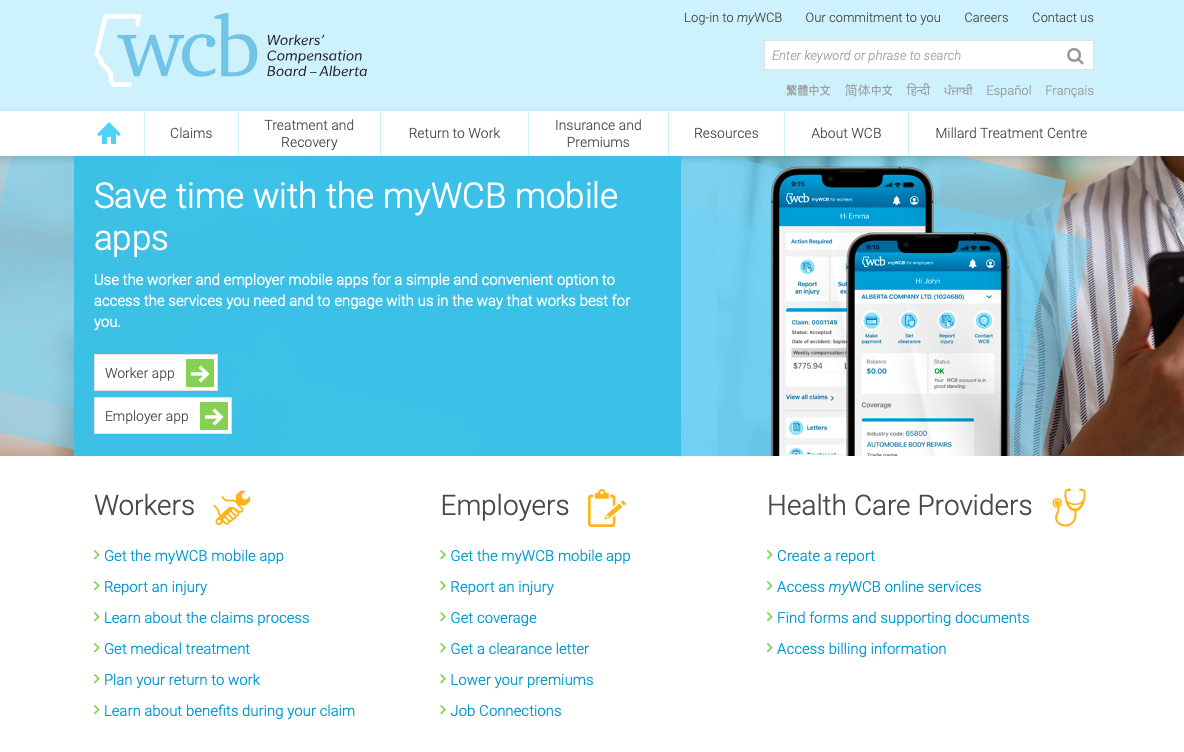 캐나다 산재는 Workers Compensation Board 라고 줄여서 WCB라고 한다. 신청 시에는 본인이 속해 있는 주에 신청을 해야 한다. 풀타임이든, 파트타임이든, 임시직이나 캐주얼직든, 심지어 자원봉사자까지 포함에서 어떤 곳에서도 사업자로 등록되어 있는 곳에서 일을 하고 있다면 누구든 신청가능하다. 나는 앨버타에 살고 있고, 앨버타에서 LPN으로 일을 하고 있으므로 당연히 앨버타 WCB에 신청을 한다. 신청을 하는 방법으로는 직장마다 구비되어있는 WCB 신청양식에 직접 자필로 써서 메일로 보내던지, 또는 온라인으로 구글에서 wcb라고 치고 들어가 가입 후 진행해도 된다.(아래 이미지를 클릭하면 홈페이지로 바로 들어간다). 또는 구글 플레이스토어나, 애플스토어에서 WCB worker app을 다운로드하여서 해도 된다.