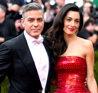 9. 조지 클루니/ 아말 클루니 : 한때 세계에서 가장 잘 생긴 배우로 명성을 떨쳤던 조지 클루니는 언제나 회색머리를 자랑해서 그런지 61세가 된 지금도 그 은빛 머리가 멋있기만 하다. 그는 17살 어린 44세 인권변호사 아말과 2014년에 결혼 후 쌍둥이를 낳았다.